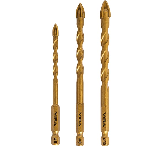 Набор сверл по стеклу и керамике VIRA TiN 3 шт с шестигранным хвостовиком 550121