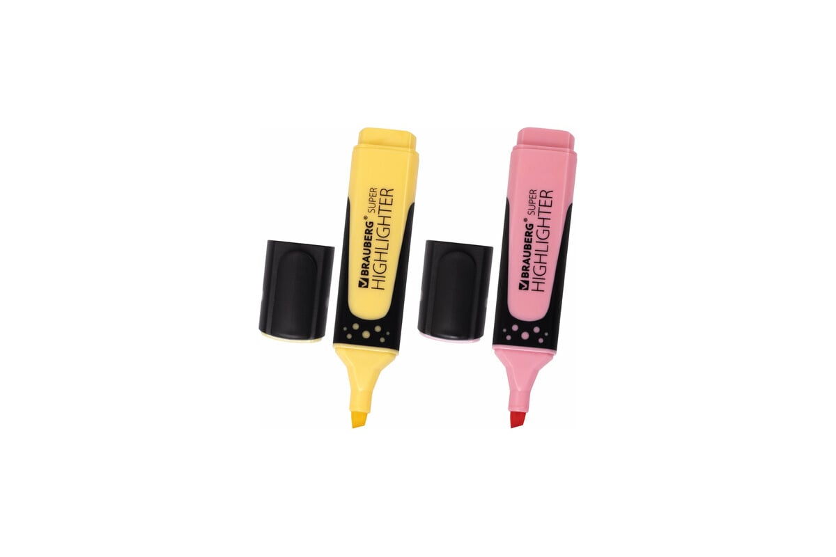 Набор текстовыделителей 24 шт в упаковке BRAUBERG 2 шт. ВАНИЛЬ/ПАСТЕЛЬНЫЙ РОЗОВЫЙ "SUPER PASTEL" 1-5 мм 151754