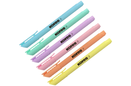 Набор текстовыделителей Kores High Liner Pastel толщина линии 1-4 мм, 6 цветов 1336208 предназначен для выделения информации.