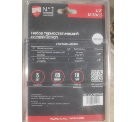 Набор термостатический осевой Royal Thermo Design 1/2М30x1.5, белый НС-1640373