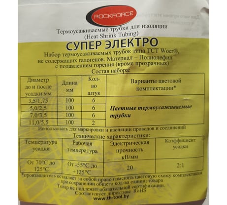 Отзывы о наборе термоусадочных трубок ROCKFORCE Супер-Электро RF-1155