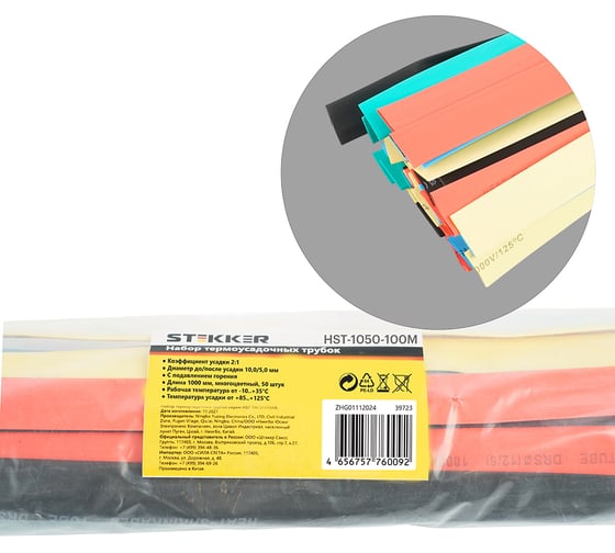 Вопросы и ответы о наборе термоусадочных трубок STEKKER 10,0/5,0, длина 100 см, усадка 2:1 мультиколор 39723