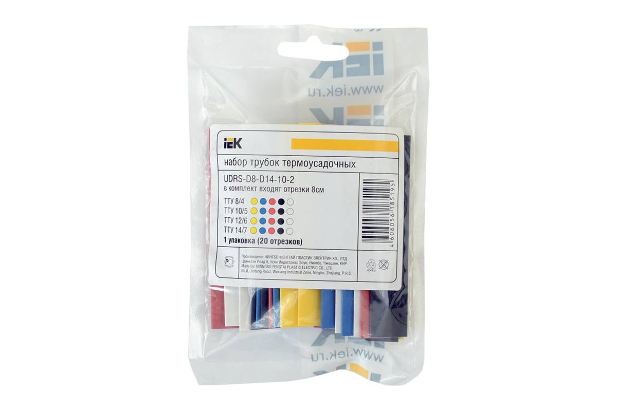 Набор термоусаживаемых трубок IEK ТТУ 2 1, 4 2, 6 3, 8 4 ЖЗ, С, К, Ч, Б 20х8см упаковка UDRS-D2-D8-10-1