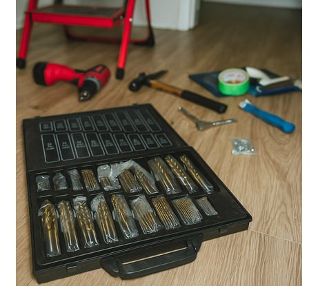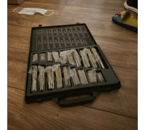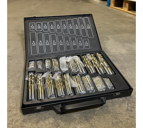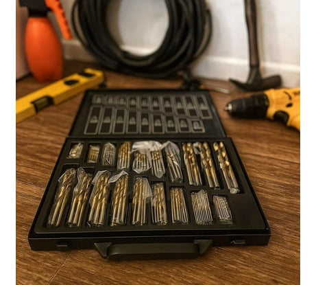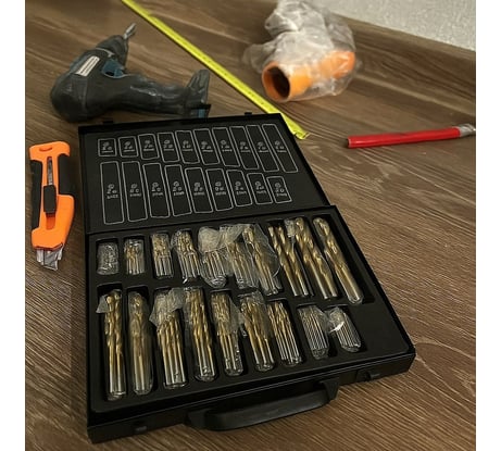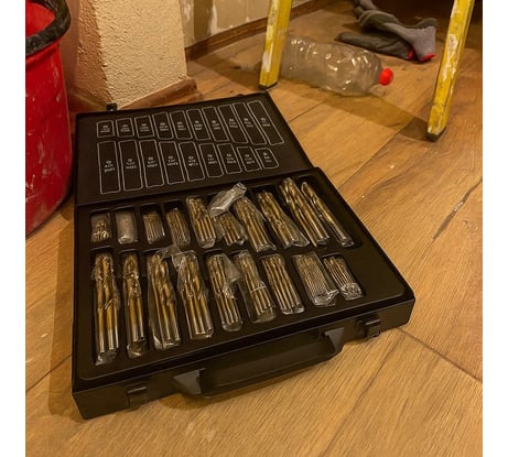 Огромный набор, беру по одной-две сверлильные операции в мастерской целый сезон. Зимой сверла держат заточку, в коробке всё организовано — удобно выбирать нужный размер