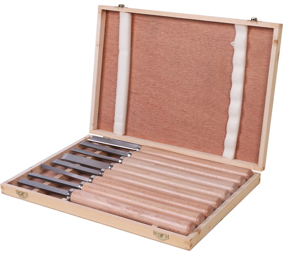 Набор охватывает основные операции при токарной обработке древесины и подходит как для мастерских, так и для индивидуального использования.