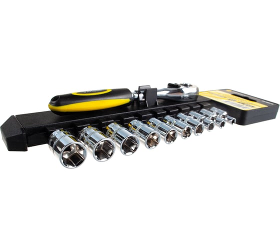 Набор торцевых головок с трещоткой ЭВРИКА 1/4 DR 4-13мм 11 предметов на держателе ER-96070 подойдет для работы с различным крепежом.