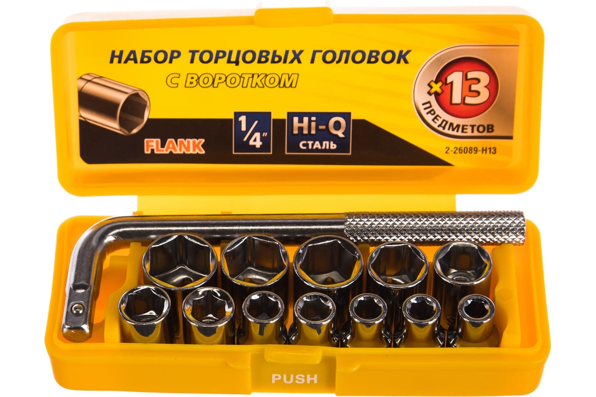 - Головки: 12 шт (4; 4,5; 5; 5,5; 6; 7; 8; 9; 10; 11; 12 и 13 мм).