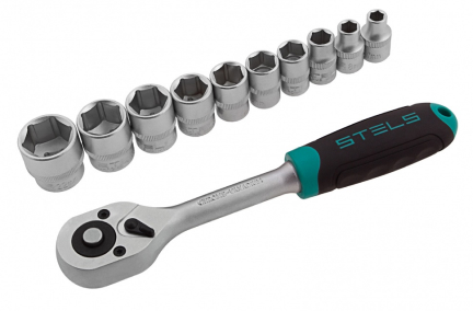 Набор торцевых головок STELS 3/8 11 предметов 14126 предназначен для обслуживания резьбовых соединений, их монтажа и демонтажа. Корпус трещоточной рукоятки и торцевых головок выполнен из хромованадиевой стали с матовым хромированием покрытия. Рукоятка ключа изготовлена из двухкомпонентного материала. Набор состоит из 11 предметов, включая держатель для инструментов.