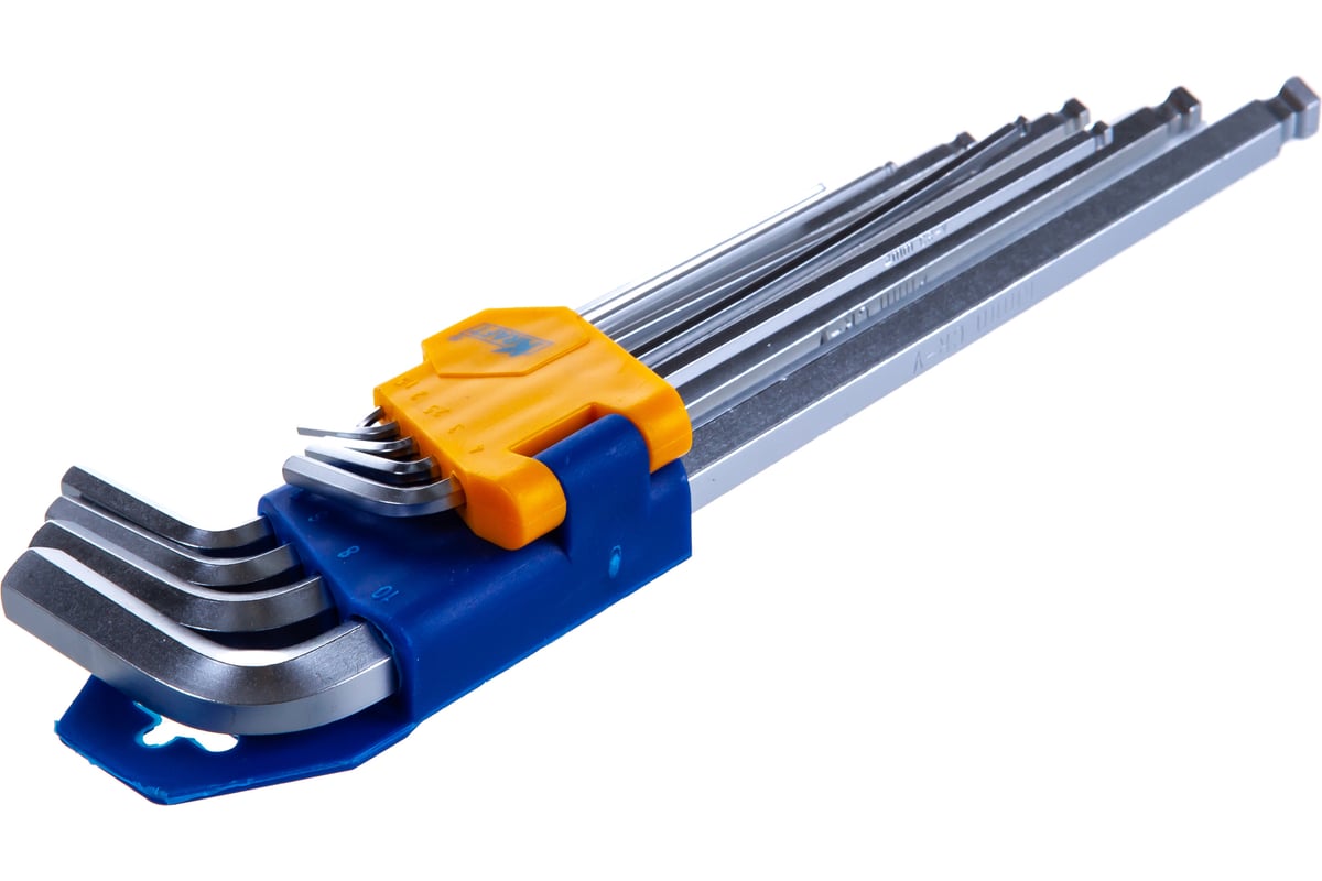 Набор торцевых шестигранных Г-образных ключей с шаром, длинных 9шт KRAFT KT 700562 представляет собой удобный инструмент, который можно использовать при работе с крепежом с внутренним шестигранником.
