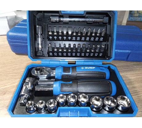 Соответствует описанию и фото . Удобный кейсик небольшой, головки размешены плотно не болтаются почти . Хотелось бы еще ручку отвертки с хорошей трещеткой , но и так годится., как силовая отвертка пойдет.