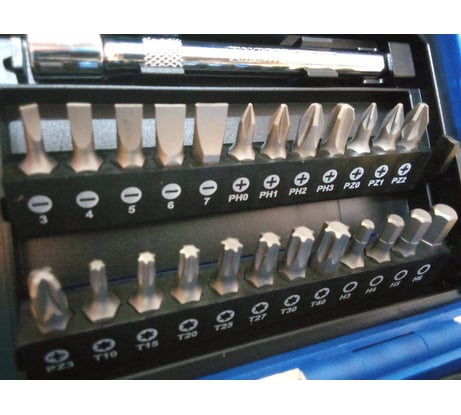 Очень достойный набор. Вполне оправдан когда надо инструмент, не занимающий много места. доукомплектовал его переходником, чтобы ручкой можно было крутить головки и удлинителем, т.к. в противном случае отвертка получается довольно короткая. Всему нашлось место в коробке. Сама коробка довольно хорошего качества, а прорезиненные края только добавляют удобства. Набор можно рекомендовать.
