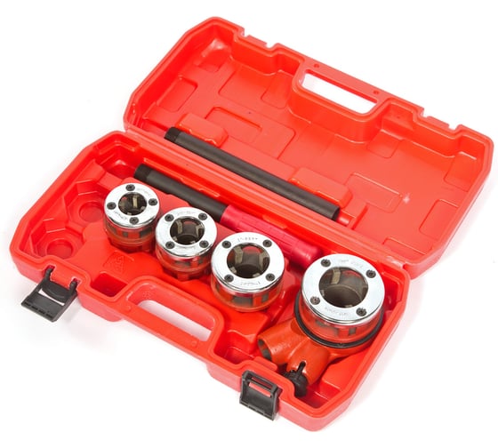 Включает в себя набор резьбонарезных головок ½"-1 ¼" и сборную рукоятку с храповым механизмом.