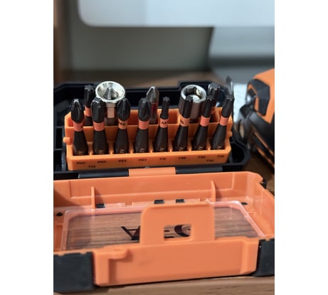 - Биты 50 мм T15 X 1, T20 X 2, T25 X 2, TX30 X 1.