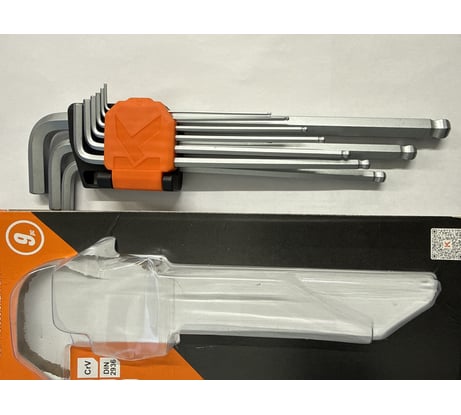 - Набор метрических L-образных шестигранных ключей с шариковой головкой из хромованадиевой стали