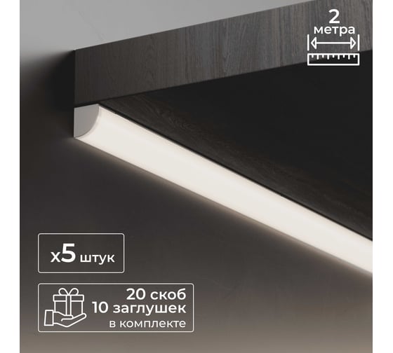 профиль 2 метра (5шт), рассеиватель (5шт), заглушки (10шт), монтажные скобы (20шт)