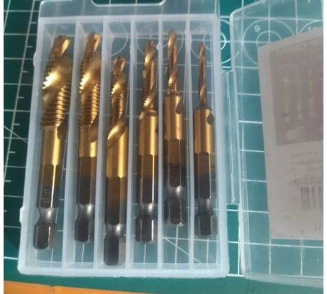 - Метчики: М3 x 0.5 мм, М4 x 0.7 мм, М5 x 0.8 мм ,М6 x 1 мм, М8 x 1.25 мм, М10 x 1.5 мм;