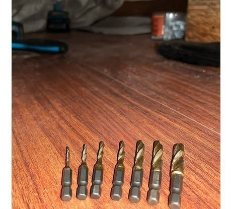 Укороченные метчики удобны в ограниченном пространстве — нарезают аккуратно, не ломаются. Использовал внутри рам агрегата — идеальная длина. Хранится в пластиковой коробке, ни один не потерялся