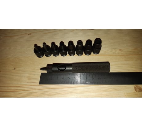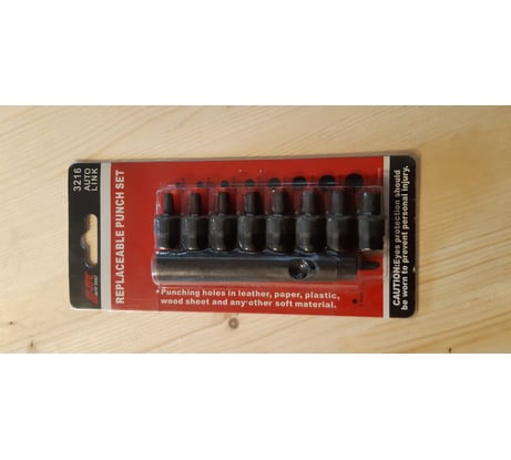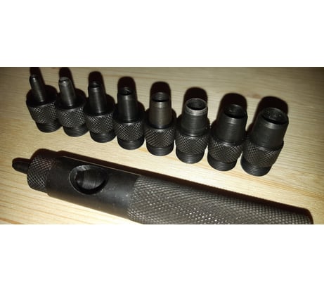 Своих денег не сказать чтобы стоил. Вырезать внешний диаметр шайбы пойдут. А внутренний уже будет конусным из-за заточки. Кстати о заточке - один пробойник (9мм) с завода со сколами на кромке. Коробки нет, в блистере хранить можно, но пользоваться неудобно. Насадок и диаметров маловато.