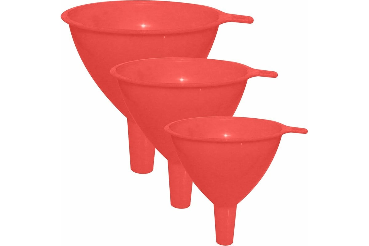 Набор воронок МУЛЬТИДОМ 3 шт диаметры 6,7,8 см 3 цвета VL80-183 предназначен для переливания жидкостей и пересыпания порошков через узкие отверстия.
