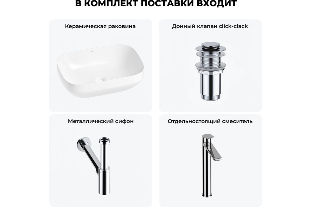 Набор Wellsee 4 в 1 Air Gap S накладная раковина 50x35 см 20212413R