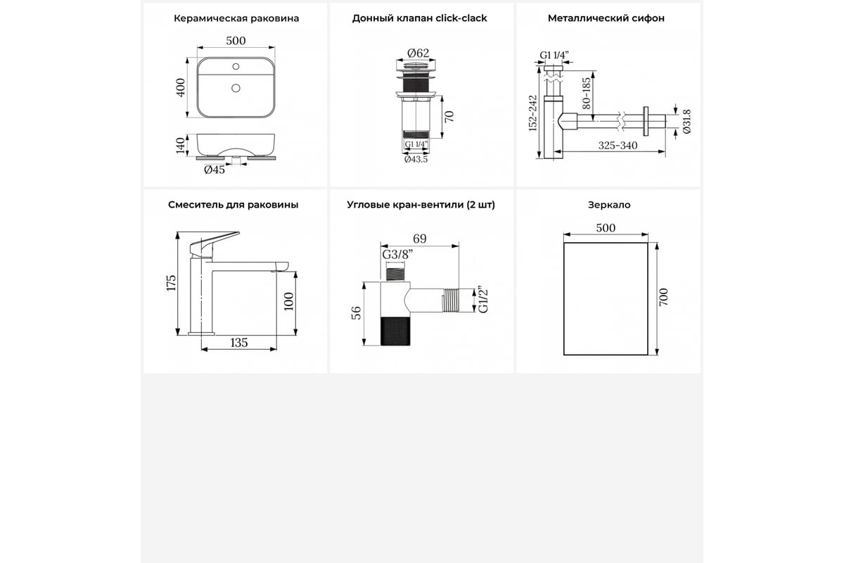 Набор Wellsee 6 в 1 Preen накладная раковина 50x40 см 20218342R