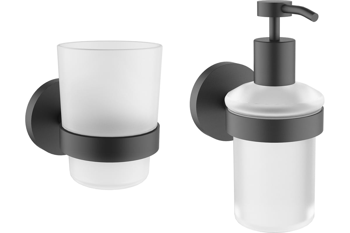 - 1 х дозатор для жидкого мыла с держателем, арт. 182512000 (стекло матовое, держатель матовый черный);