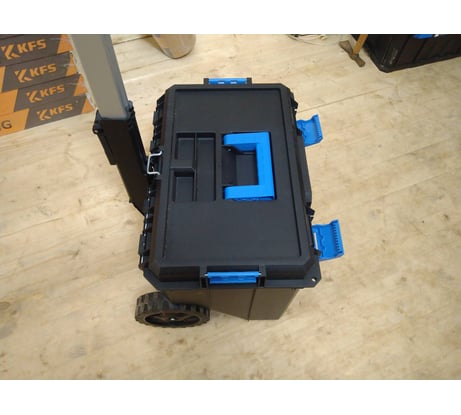 - Удобная транспортировка: Ящик для инструментов на колесах оснащен функциональной рукояткой и большими колесами с резиновым покрытием, обеспечивающими легкую и удобную транспортировку даже при полной загрузке.