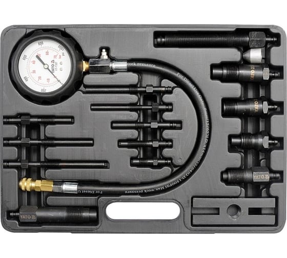 Набор YATO для измерения компрессии в дизельных двигателях 16 предметов пластиковый кейс YT-7307