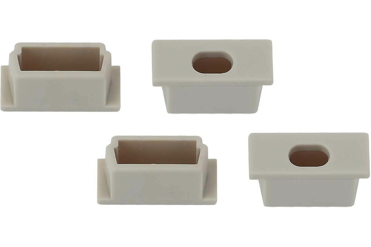 Стандартные заглушки профиля светодиодной ленты 15х6мм с отверстием для вывода провода. Хорошо держатся в профиле, не болтаются, имеют приятный цвет. Докупал в комплект к профилю ЭРА.