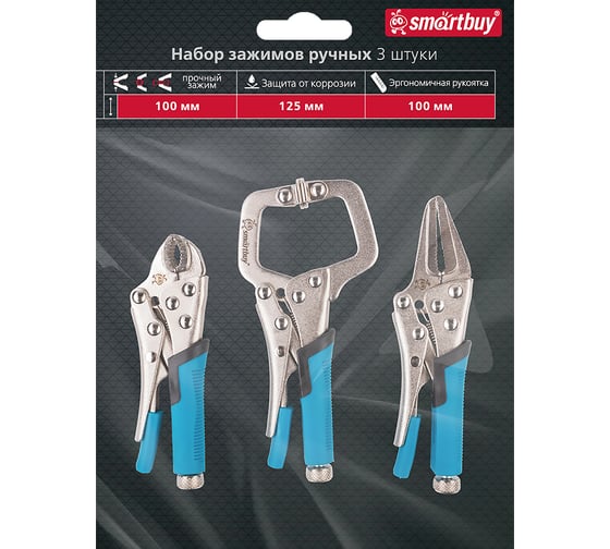 Набор зажимов ручных металлических Smartbuy, 3 шт, 100-125 мм, tools SBT-LPS-3p1