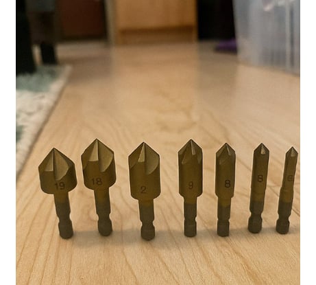 Чистая зенковка, ровные фаски, набор покрывает нужные размеры. Ничего лишнего, всё как надо для аккуратной работы