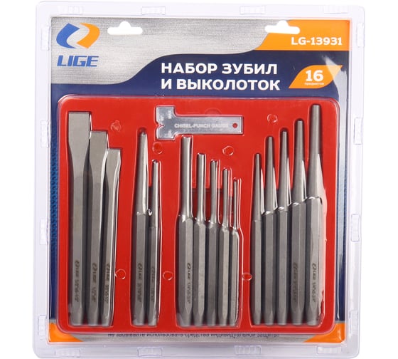 Набор зубил и выколоток LIGE 16пр., (Бородок:2,3,4,5,6мм, выколотка:2,3,4,5,6мм, зубило:10,13,15мм, 080340