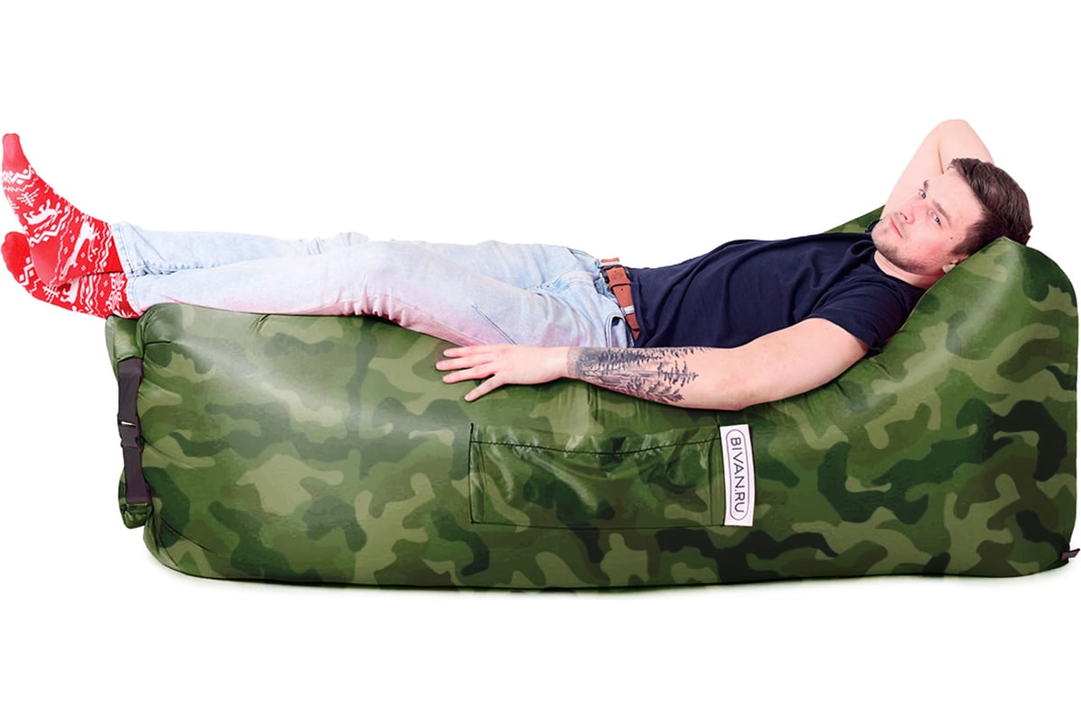 Надувной диван БИВАН 2.0 хаки BVN17-ORGNL-CAM - это мебель из воздуха, которую удобно брать с собой на отдых, в поход, на пляж и т.д. Выдерживает нагрузку до 300 кг. Комплектуется наплечной сумкой.