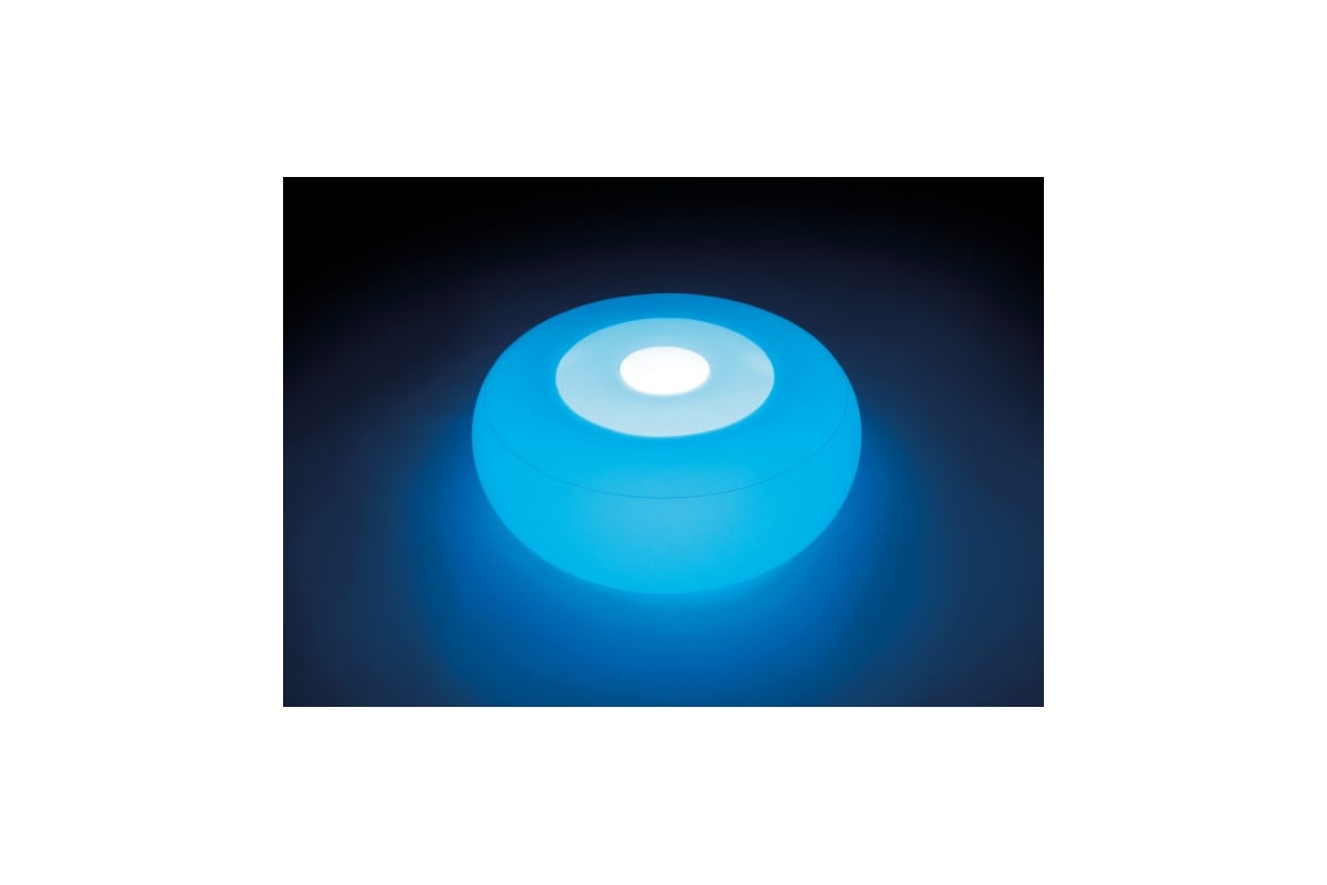 Надувной пуф Intex с Led подсветкой 68697 предназначен для использования как в качестве сиденья, так и в качестве декора комнаты или бассейна.