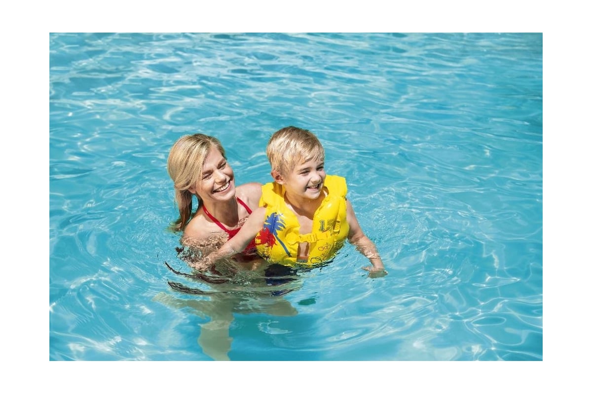 Надувной жилет позволяет безопасно обучить ребенка плаванью.