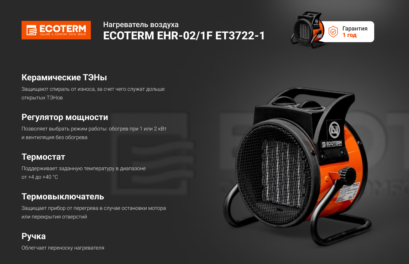 Нагреватель воздуха ECOTERM электрический EHR-02/1F ET3722-1