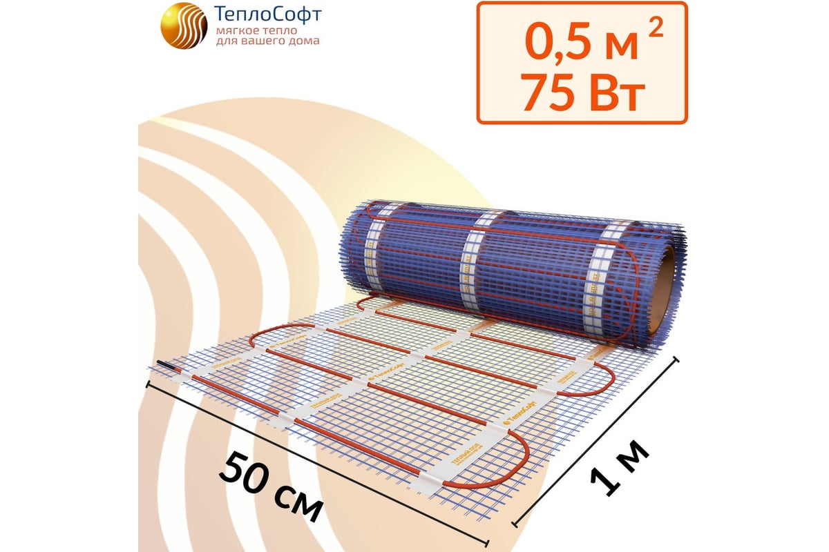 Нагревательный мат ТеплоСофт Профи 0,5 м2 75Вт с сенсорным терморегулятором 0575/4