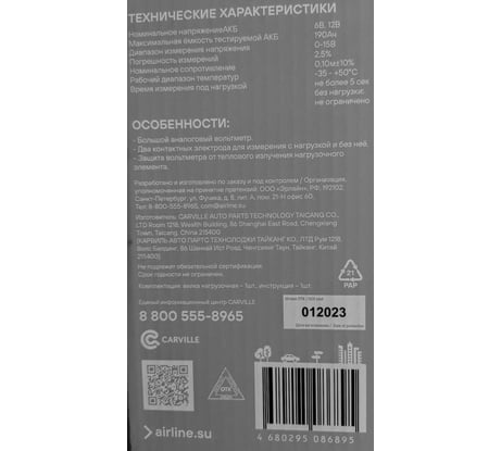 Нагрузочная вилка Airline Тестер батарей ABT-12-02 облегчает считывание показаний.