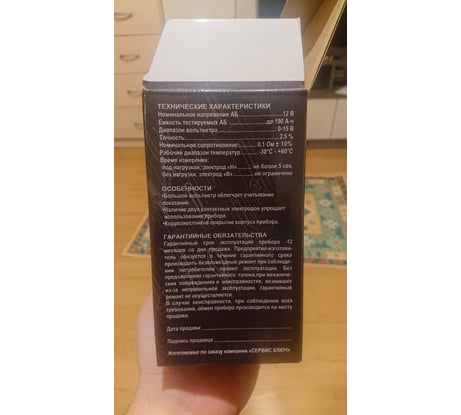 Корпус изготовлен из качественного алюминия и покрыт антикоррозийным покрытием. На приборе имеется удобный и большой вольтметр (диапазон 0-15В) для считываний показаний и двумя контактными электродами и зажимом типа «Крокодил», провод длиной 50 см. Ручка резиновая, длиной 90 мм. Вилка упакована в коробку и поставляется в собранном виде. Габариты - 125х65х60 мм, вес - 500 гр.
