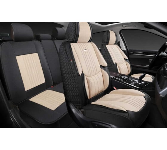Накидки 5D PSV Legion Len (Черно-Бежевый/Отстрочка Белая), комплект на весь салон, лен 138670