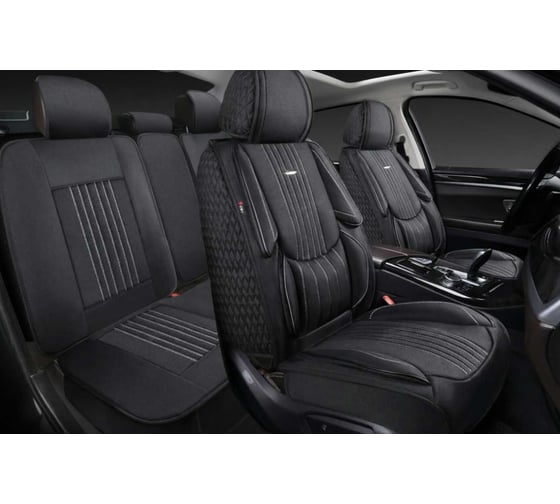 Накидки 5D PSV Legion Len (Черный/Отстрочка Белая), комплект на весь салон, лен 138665