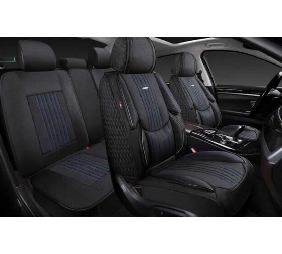 Накидки 5D PSV Legion Len (Черный/Отстрочка Синяя), комплект на весь салон, лен 138667