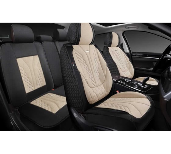 Накидки 5D PSV Mezon Len (Черно-Бежевый/Отстрочка Белая), комплект на весь салон, лен 138676