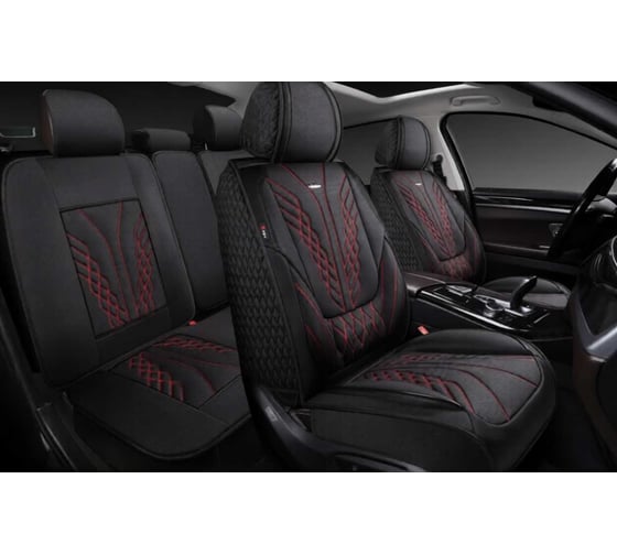 Накидки 5D PSV Mezon Len (Черный/Отстрочка Красная), комплект на весь салон, лен 138672