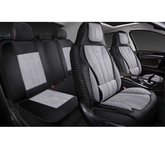 Накидки 5D PSV Vektor Alcantara Sport (Черно-Серый/Отстрочка Белая), комплект на весь салон, алькантара 138687