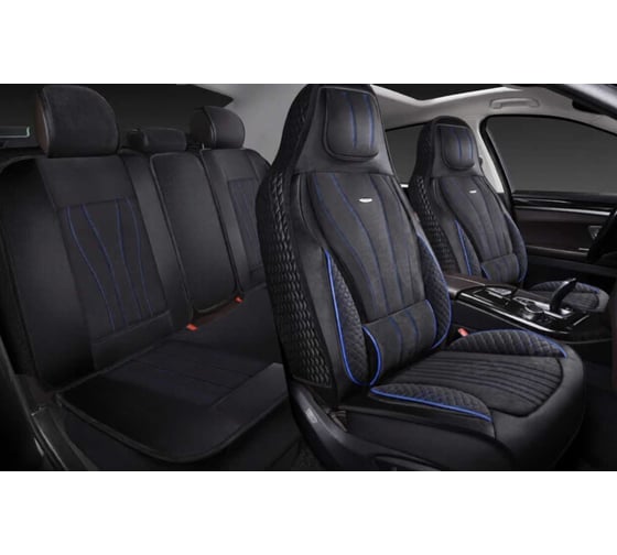 Накидки 5D PSV Vektor Alcantara Sport (Черный/Отстрочка Синяя), комплект на весь салон, алькантара 138685