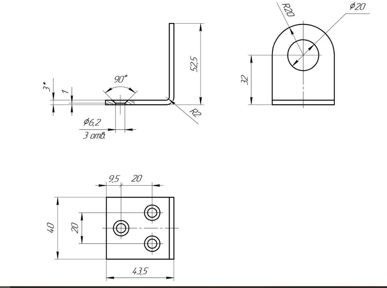 Размер 3,0х40х90 мм, гнутая под 90°.