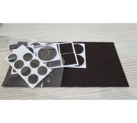 Включает семь типоразмеров изделий круглой и прямоугольной формы, которые наклеивают на ножки мебели для защиты поверхности полов от повреждений.