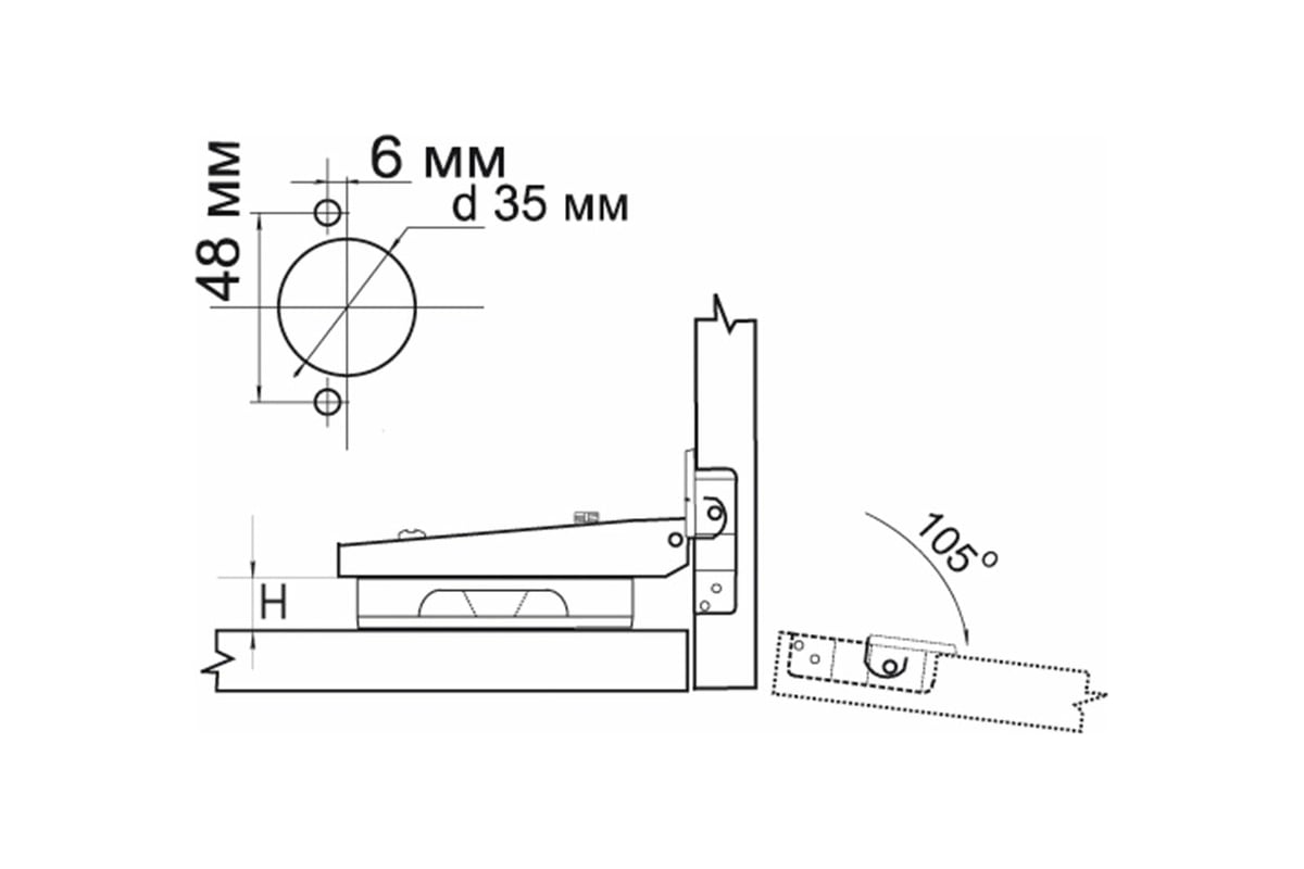 Накладная петля Mebax MF-201А Slide-on 8336 00-00001326 оптимально подойдёт для мебели класса стандарт. Петли четырехшарнирные мебельные накладные - это основные петли, на которых собирается девяносто процентов всей мебели. Они соединяют боковую стенку с фасадом под углом 90 градусов и имеют угол открывания 95-110 градусов.