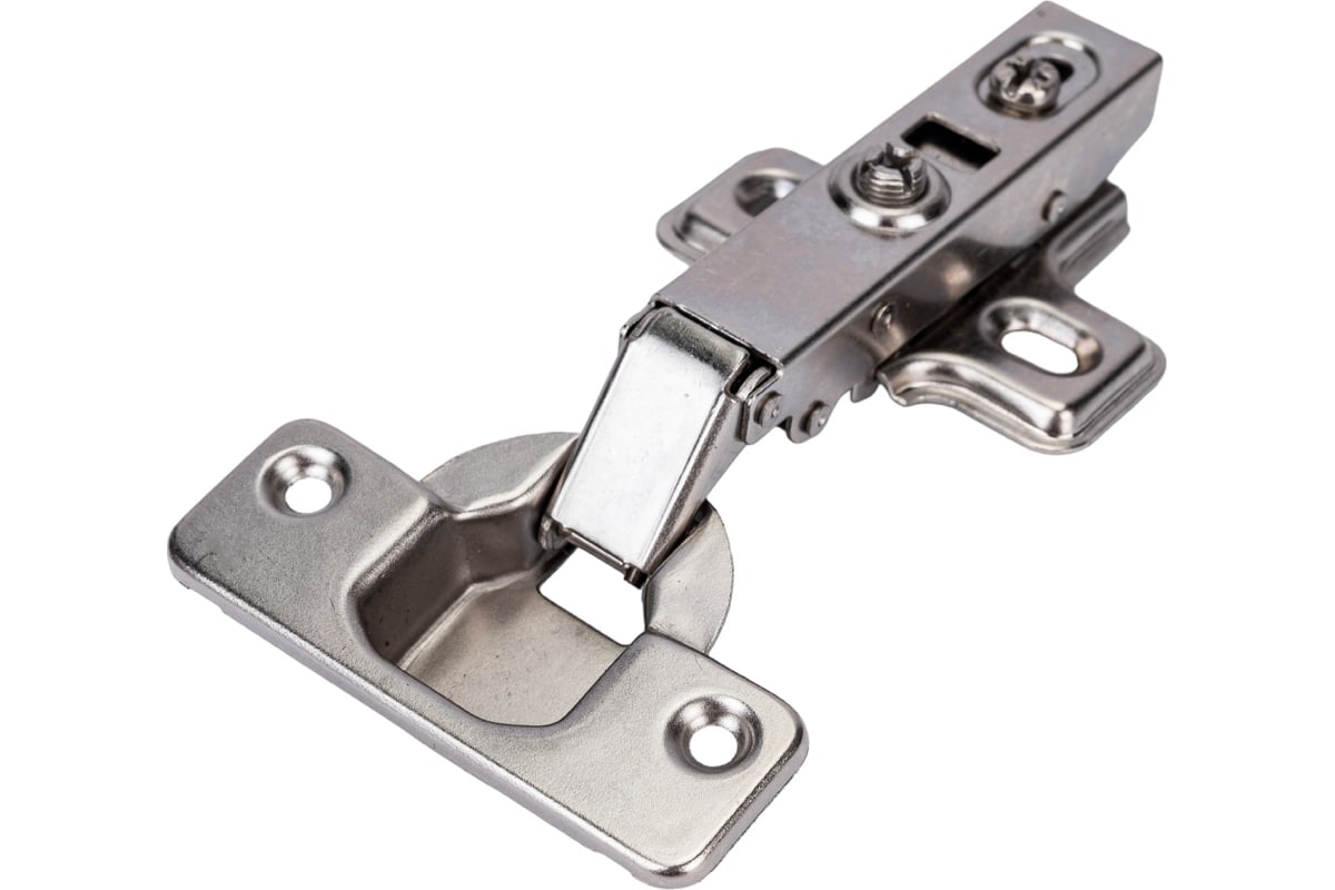 Накладная петля с доводчиком Mebax Clip-on 00-00002158 имеет систему быстрого монтажа Clip on, оборудована доводчиком плавного закрывания и оптимально подойдет для мебели класса стандарт и среднего ценового диапазона. Петли такого типа используются для изготовления большинства мебельных изделий. Они соединяют боковую стенку с фасадом под углом 90 градусов, и имеют угол открывания 95-110 градусов.